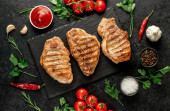 grillowane steki łososiowe ze składnikami na kamiennym tle