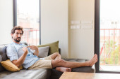 Koronawirus się skończył, człowiek z koncepcją wolności trzyma maskę i otwiera okno w słonecznej wolności. Koronawirus się skończył. Wygraliśmy. Koniec z kwarantanną. Oddychaj głęboko. Zdejmij maskę. Leczenie.