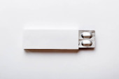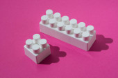Biały detal konstruktora dzieci izolowane na zielonym tle.