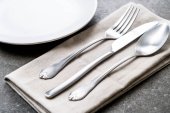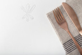 białe metalowe sztućce na drewnianej desce do krojenia