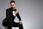 Zdjęcie "siedzi moda młody człowiek uśmiecha i posiada kurtka" może być wykorzystywane do celów osobistych i komercyjnych zgodnie z warunkami zakupionej licencji Royalty-free. Obraz jest dostępny do pobrania w jakości wysokiej rozdzielczości do 5760x3840.