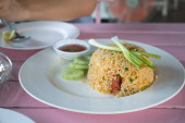 Zdjęcie "Zdrowy domowe smażony ryż z krewetkami." może być wykorzystywane do celów osobistych i komercyjnych zgodnie z warunkami zakupionej licencji Royalty-free. Obraz jest dostępny do pobrania w jakości wysokiej rozdzielczości do 5760x3840.