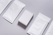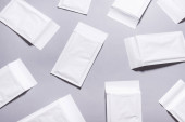 Wiele kopert z białym papierem na szarym tle, teksturowane