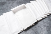 Wiele kopert z białym papierem na szarym tle, teksturowane