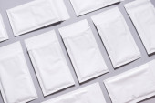 Wiele kopert z białym papierem na szarym tle, teksturowane