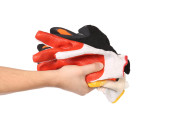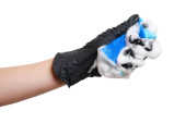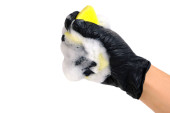 Zdjęcie "Ręka na czarną rękawicę i gąbkę. Ręka z czarną rękawicą. Koncepcja pracy w gospodarstwie domowym" może być wykorzystywane do celów osobistych i komercyjnych zgodnie z warunkami zakupionej licencji Royalty-free. Obraz jest dostępny do pobrania w jakości wysokiej rozdzielczości do 5760x3840.