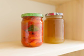 Zdjęcie "3 szklane słoiki marynowanych warzyw, domowej roboty dla unikalnego przepisu. Czosnek. pomidory, papryka, marchew i inne." może być wykorzystywane do celów osobistych i komercyjnych zgodnie z warunkami zakupionej licencji Royalty-free. Obraz jest dostępny do pobrania w jakości wysokiej rozdzielczości do 5760x3840.