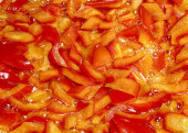 Gotowanie sosu pomidorowego, zbliżenie warzyw na parze do książki kucharskiej lub tła blogu żywności