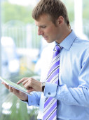 Zdjęcie "Biznesmen korzystający z tabletu w biurze" może być wykorzystywane do celów osobistych i komercyjnych zgodnie z warunkami zakupionej licencji Royalty-free. Obraz jest dostępny do pobrania w jakości wysokiej rozdzielczości do 5760x3840.