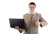 biznesmen z czerwony laptop