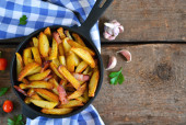 domowe frytki z rozmarynem i soli w patelni żeliwnych