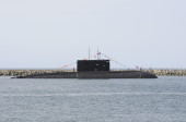 łódź podwodna pływa po powierzchni morza w pogodny słoneczny dzień