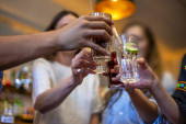 Zbliżenie przyjaciół majstrujących przy piwie. Koncepcja przyjaźni i czasu wolnego.
