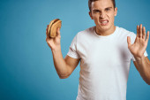 ciemne tło przystojny mężczyzna z broda gospodarstwa świeże owoce i styl życia przezroczysty kubek