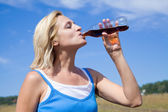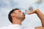 Dojrzały mężczyzna pije sporty wodne na świeżym powietrzu