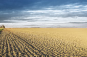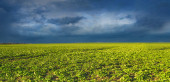 wiosną pola w okolicy, pierwsze pędy zielone, krajobraz