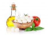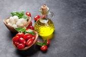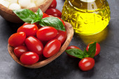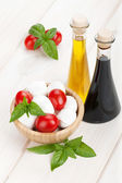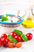 ser mozzarella z pomidorami wiśniowymi i bazylią