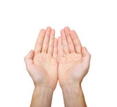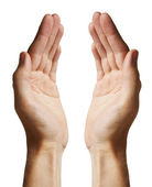 zbliżenie czystych rąk mężczyzny z otwartymi dłońmi na białym tle, makieta. zbliżenie.