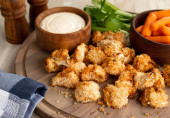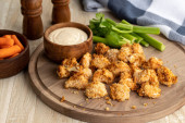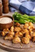 Smażone powietrzem kalafiory i dip ranczo na drewnianej tacy
