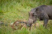 Hipopopotam zwyczajny (Hipopotamus amphibius) na pastwisku, Park Narodowy Murchison Falls, Uganda.