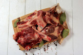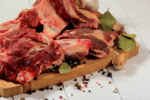 Zdjęcie "Surowe mięso z kością na glinianej płycie i brązowym tle kamiennym.Surowe mięso z kością wołową. Wybór kości wołowych do zupy" może być wykorzystywane do celów osobistych i komercyjnych zgodnie z warunkami zakupionej licencji Royalty-free. Obraz jest dostępny do pobrania w jakości wysokiej rozdzielczości do 5760x3840.
