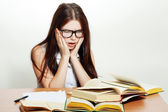 młody nauczyciel w okularach z książki.