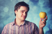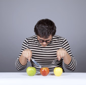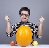 młodych ludzi szalonych staram się jeść dwa jabłka i dyni.
