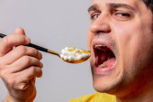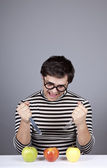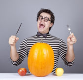młodych ludzi szalonych staram się jeść dwa jabłka i dyni.