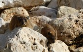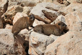 zapory siedzą na gorących kamieniach w parku miejskim nad brzegiem Morza Śródziemnego w północnym Izraelu