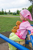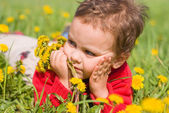 miło dziewczyna z mniszka lekarskiego na ławce w parku