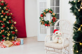 Zdjęcie "Choinka sosna z prezentami na nowy rok wnętrze pocztówka baner biały niebieski tło" może być wykorzystywane do celów osobistych i komercyjnych zgodnie z warunkami zakupionej licencji Royalty-free. Obraz jest dostępny do pobrania w jakości wysokiej rozdzielczości do 5760x3840.