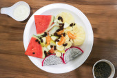 Zdjęcie "sałatki owocowej, jabłkowej i smoczej lub pikantnej sałatki owocowej" może być wykorzystywane do celów osobistych i komercyjnych zgodnie z warunkami zakupionej licencji Royalty-free. Obraz jest dostępny do pobrania w jakości wysokiej rozdzielczości do 5760x3840.