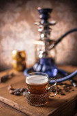 koncepcja tytoniu hookah: melon. Świeży melon z lobules. Hookah i owoce po ciemku z chmurami dymu shisha.