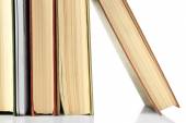stapelen van oude boeken met vergeelde pagina's op witte achtergrond