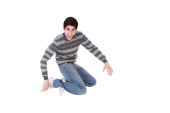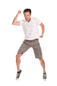 portret młodzieńca zaskoczony gestykulacji.