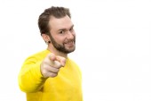portret młodzieńca zaskoczony gestykulacji.