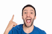 portret młodzieńca zaskoczony gestykulacji.