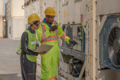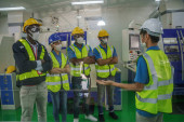 Zdjęcie "przemysłowe tło pracowników fabryki i technika noszącego maskę do ochrony koronawirusa covid-19 z kamizelką bezpieczeństwa i hełmem posiadającego szczegółowy opis pracy od brygadzisty fabryki w sterowni" może być wykorzystywane do celów osobistych i komercyjnych zgodnie z warunkami zakupionej licencji Royalty-free. Obraz jest dostępny do pobrania w jakości wysokiej rozdzielczości do 5760x3840.