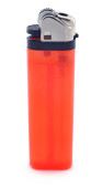 Czerwony filtr odkurzacza izolowany na białej powierzchni
