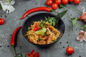Zdjęcie "Smażony makaron i warzywa, w czarnej misce. Pyszne, pożywne azjatyckie jedzenie." może być wykorzystywane do celów osobistych i komercyjnych zgodnie z warunkami zakupionej licencji Royalty-free. Obraz jest dostępny do pobrania w jakości wysokiej rozdzielczości do 5760x3840.