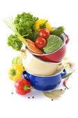 kolorowe warzywa pochodzące z czerwony garnek do gotowania