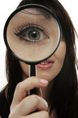 Kobieta szuka do szkła magniying