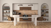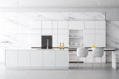 Nowoczesna kuchnia w czarno-białym marmurze z wyspą i stolcami - renderowanie 3d