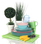 czyste naczynia z kwiaty na białym tle
