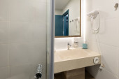 Wnętrze łazienki hotelowej z kabiną prysznicową