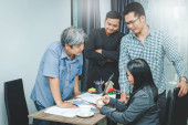 Grupa pracowników, biura, spotkania, praca, wymiana pomysłów