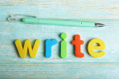Zdjęcie "Słowo WRITE napisane drewnianymi klockami. Man hand holding drewniany blok kostki z WRITE słowo biznesu na zielonym tle trawnika." może być wykorzystywane do celów osobistych i komercyjnych zgodnie z warunkami zakupionej licencji Royalty-free. Obraz jest dostępny do pobrania w jakości wysokiej rozdzielczości do 5760x3840.
