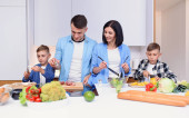 Zdjęcie "Cute rodziny przygotować jedzenie w kuchni" może być wykorzystywane do celów osobistych i komercyjnych zgodnie z warunkami zakupionej licencji Royalty-free. Obraz jest dostępny do pobrania w jakości wysokiej rozdzielczości do 5760x3840.