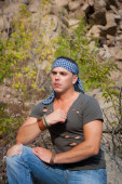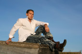 człowiek w trawie