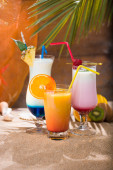 Zdjęcie "świeże tropikalne koktajle na słonecznej plaży" może być wykorzystywane do celów osobistych i komercyjnych zgodnie z warunkami zakupionej licencji Royalty-free. Obraz jest dostępny do pobrania w jakości wysokiej rozdzielczości do 5760x3840.